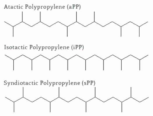 Based on the geometric order and location of molecules, different types of PP can be formed, which are isotactic, syndiotactic, and atactic.